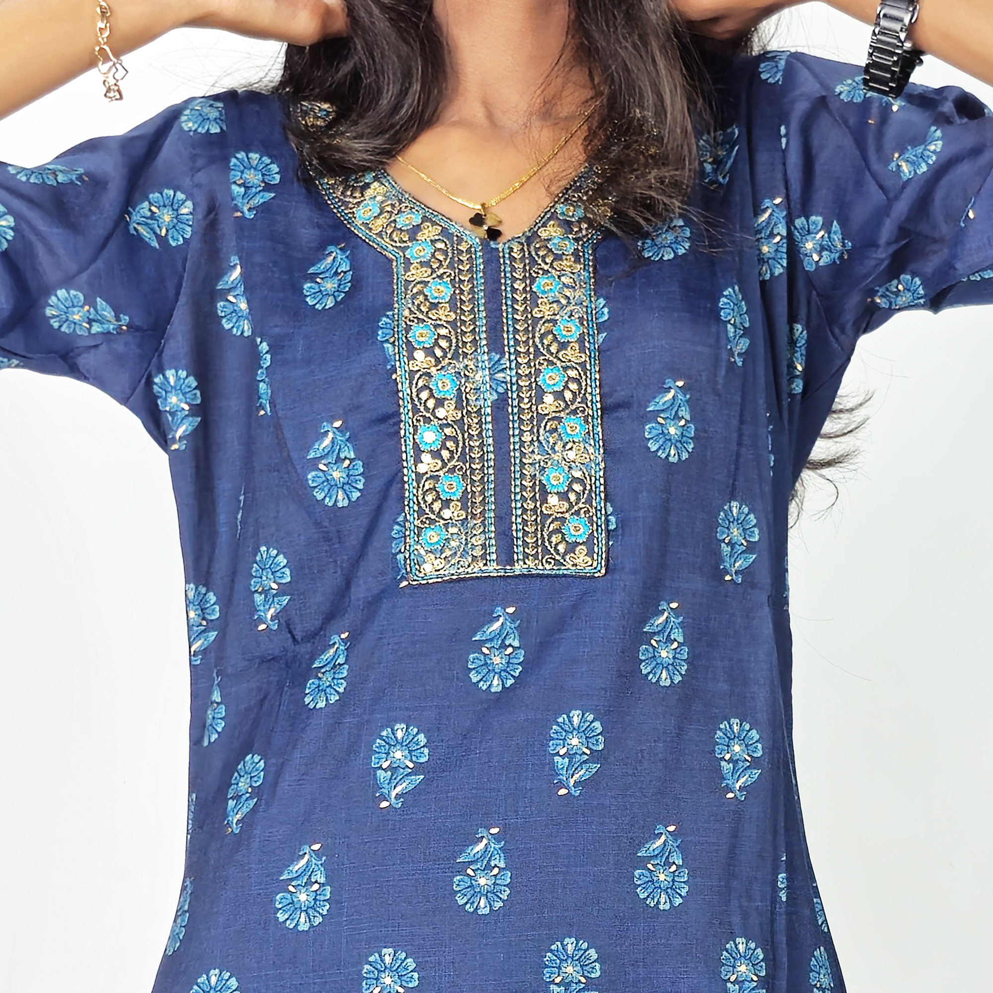 Neck Type: Round Neck with Embroidered Panel