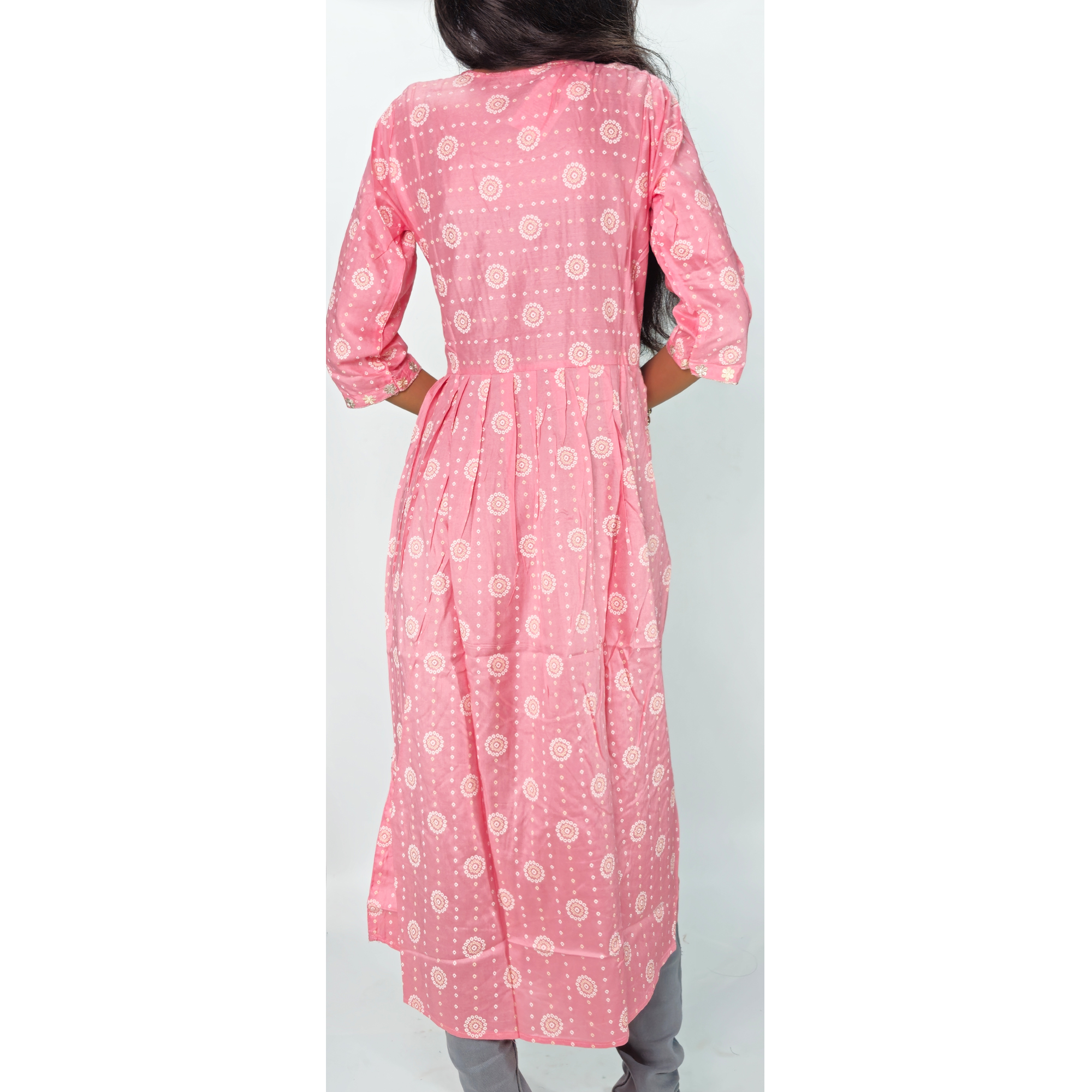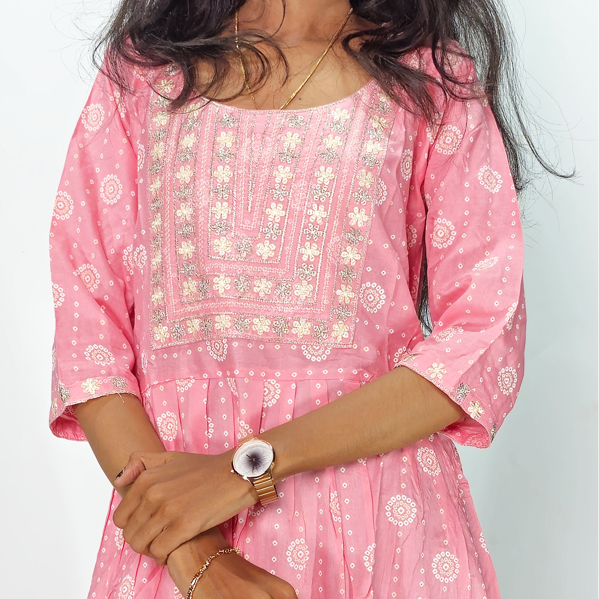 Color: Light pink base with white printed/embroidered motifs throughout.​