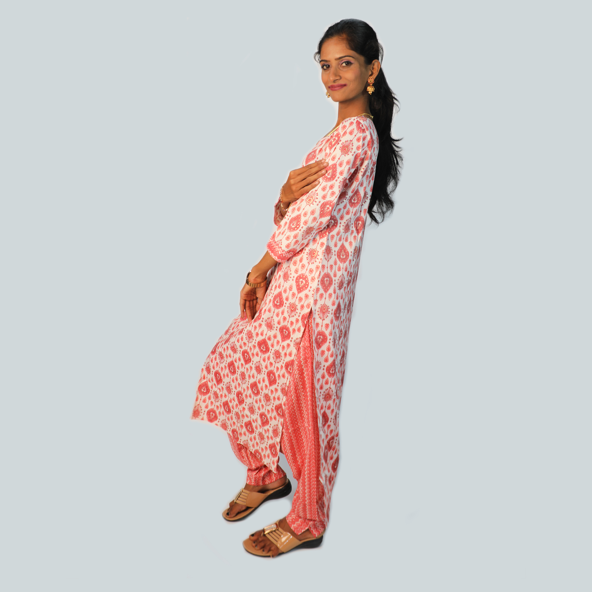 Bottom Wear: Pink Cotton Salwar with matching prints