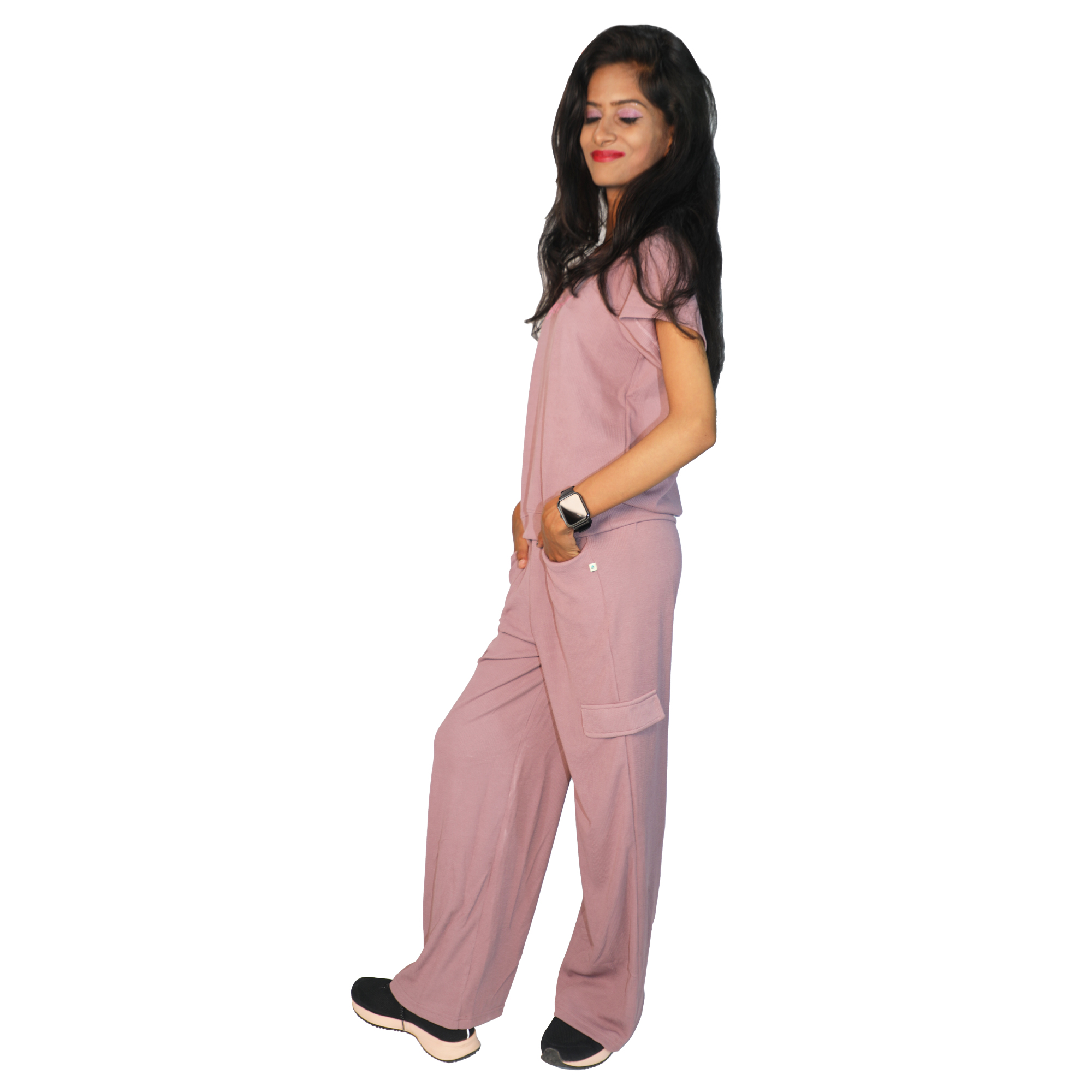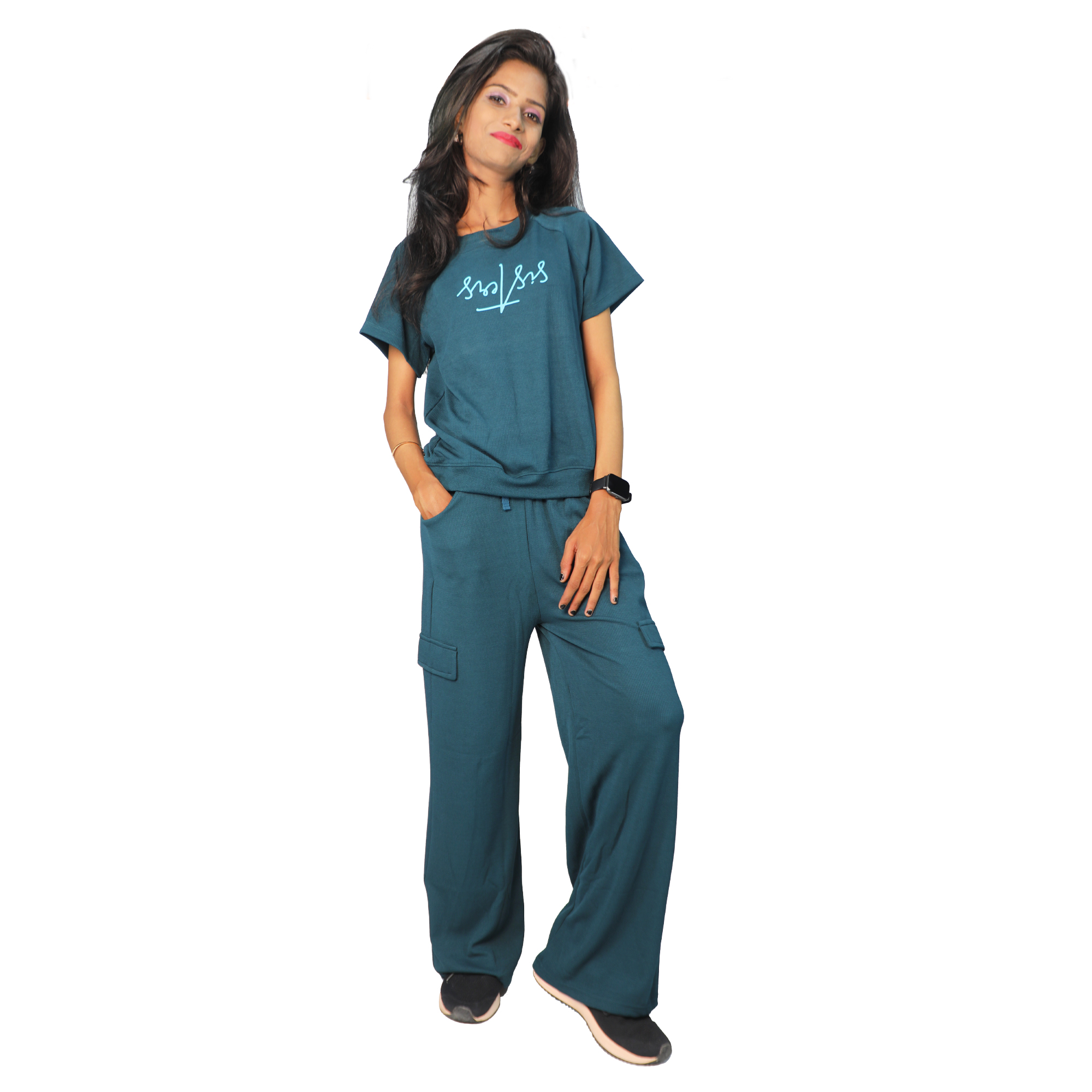 Bottoms: Comfortable wide-leg silhouette with an elasticated waist and functional side cargo pockets.